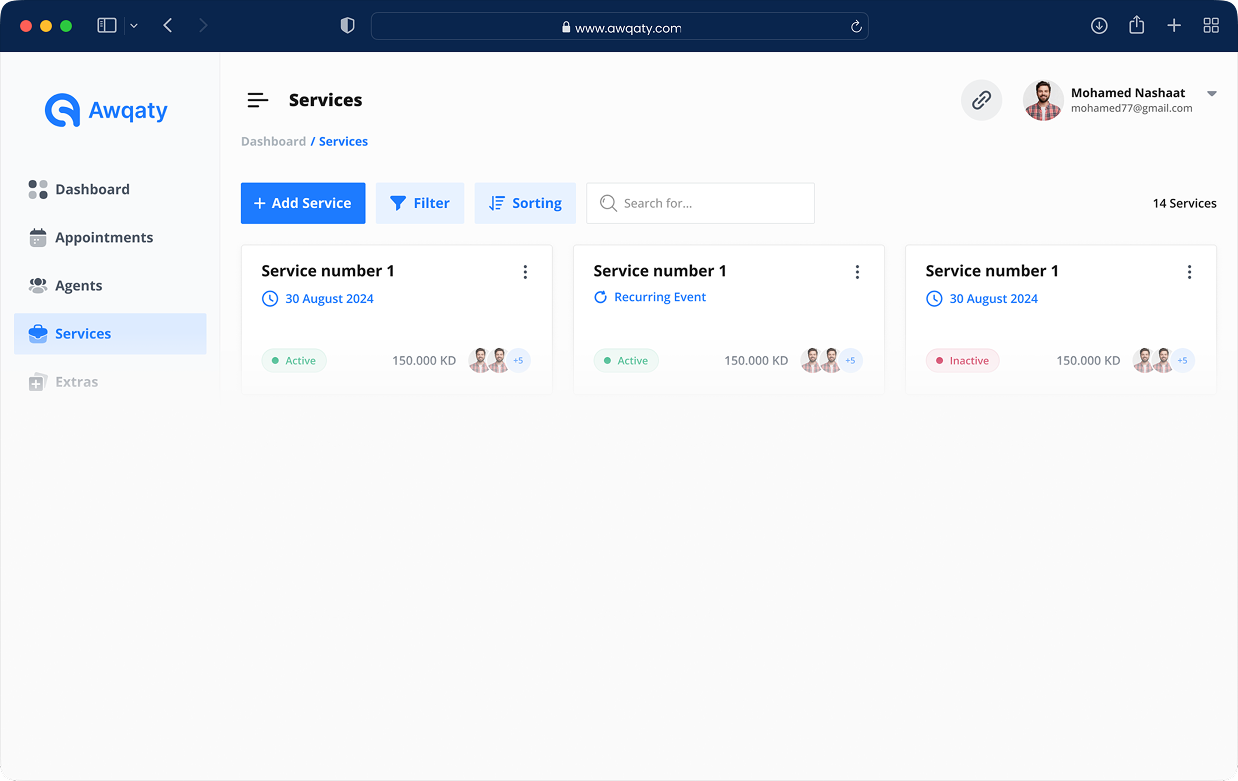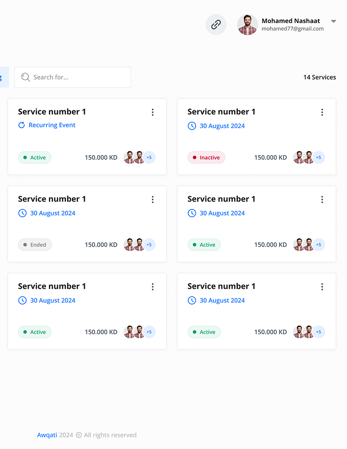 Through awqaty, you can enter information about all the services you offer to your clients, such as service description, details, price, availability times, and payment link.